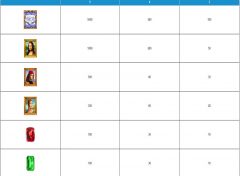 | Os símbolos salariais básicos são as três jóias principais que são usadas nas pinturas. As três jóias são cores diferentes e em formas diferentes, facilitando que sejam contadas uma da outra. Pelo menos dois deles valem o mesmo. | Gem amarela: 10 - 80