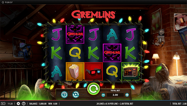 A grade do carretel 5 × 3 terá luzes de Natal decoradas. Isso ocorre porque o filme em si se passa nos feriados. Os rolos giram à medida que as luzes pisam dentro e fora. No fundo, você pode ouvir a risada travessa dos temidos Gremlins escondidos na sala. Existem 20 linhas de pagamento para vencer, com estes sendo fixos e incapazes de mudar. Abaixo da grade estarão seus botões. Aqui você pode girar os rolos, definir sua aposta atual e acessar o menu para obter mais informações sobre bônus. Você também pode definir o jogo no giro automático para girar automaticamente as bobinas.