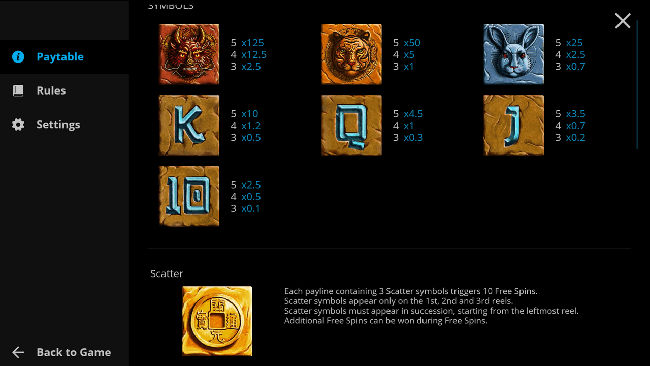 Envolto em uma parede antiga está um tesouro mitológico que os jogadores procuram explorar e cavar por si mesmos A Grande Máquina de caça -níqueis do tesouro da parede, Desenvolvido por Evoplay. O jogo apresenta um tema chinês e tem 5 rolos. Ele vem com 20 linhas de reprodução que oferecem recompensas suficientes ao longo da jogabilidade.
