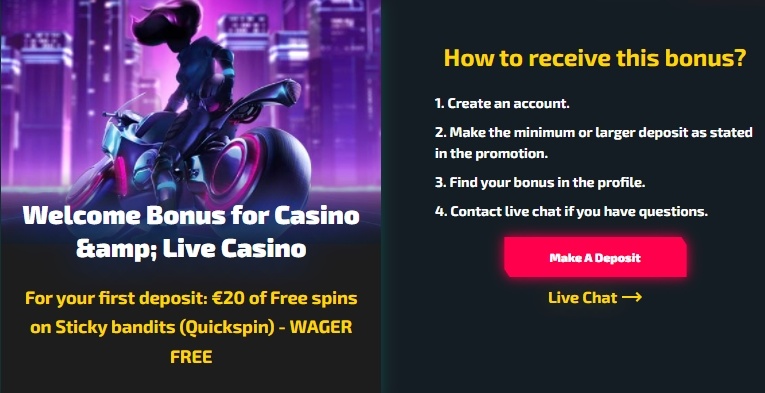 O processo de inscrição aparece com uma oferta de bônus sem aposta. O EUR20 no valor de giros gratuitos de cassino empurra diretamente um para completar a oferta para agarrá -lo.