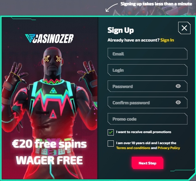Passo 1: Inscreva -se: é rápido e direto. O processo de registro leva um minuto ou menos para ser concluído. Com seu e -mail em mãos e uma senha pronta, tudo o que você precisa é inserir as informações. Se você já possui o código promocional de bônus, adicione aqui também.
