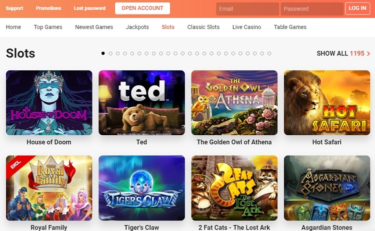 Oferece vários Jogos de caça -níqueis que incluem microgaming's Romance imortal e Mega Moolah, bem como os arcanjos de Netent: salvação e giro de frutas e muitos outros jogos de slots que lhe proporcionarão uma diversão extrema. Ele também oferece slots de 3 rolos, como Super Nudge 6000 e Mega Joker. Ele continua adicionando novos slots regularmente para oferecer a seus jogadores uma nova variedade cada vez que acessam a plataforma.