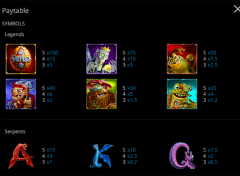 - Darkland: Existem 10 rodadas diferentes nas Spins Livre Darkland. Somente os símbolos do crânio e da serpente aparecerão nos rolos. Os ícones do crânio vão substituir todos os outros ícones. O peito mágico está sempre ativo durante esta rodada e o aumento dos multiplicadores de 4x, 6x, 8x, 10x e 12x voam para fora dele.