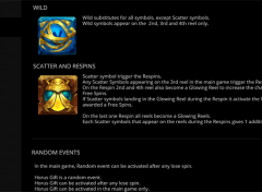 Durante o último respin, todos os rolos são convertidos em rolos brilhantes. Se alguma dispersão nas bobinas, 1 spin gratuito adicional é concedido ao jogador.