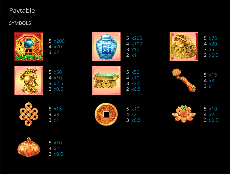 Evoplay, que é o provedor de talismãs da fortuna, garantiu proporcionar uma história clássica de sorte e riqueza adaptada da antiga sabedoria da sorte chinesa. Seja preferido pelos deuses de sorte ou não, depende de você para descobrir. Jogue hoje a versão de demonstração de talismãs da fortuna, conheça os itens essenciais desta jogabilidade hábil e prossiga para testar sua sorte com os deuses chineses interpretando talismãs de fortuna por dinheiro real.