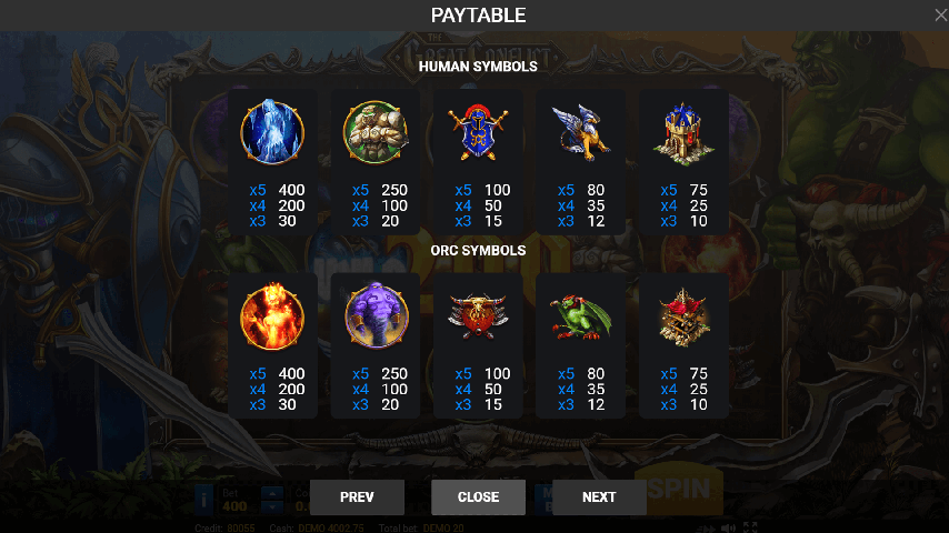 A primeira impressão lhe dirá que eles são quase semelhantes, mas a etapa inicial é para você distinguir esses personagens. Embora os orcs tenham características humanas, elas são bastante feias com más intenções. Portanto, eles são os agentes de agressão que você precisa lutar no jogo. Os jogadores também podem encontrar mais outros símbolos que incluem casas improvisadas para os orcs e também para fortalezas. No entanto, o jogo não possui os símbolos alfanuméricos que são comuns em outros slots.