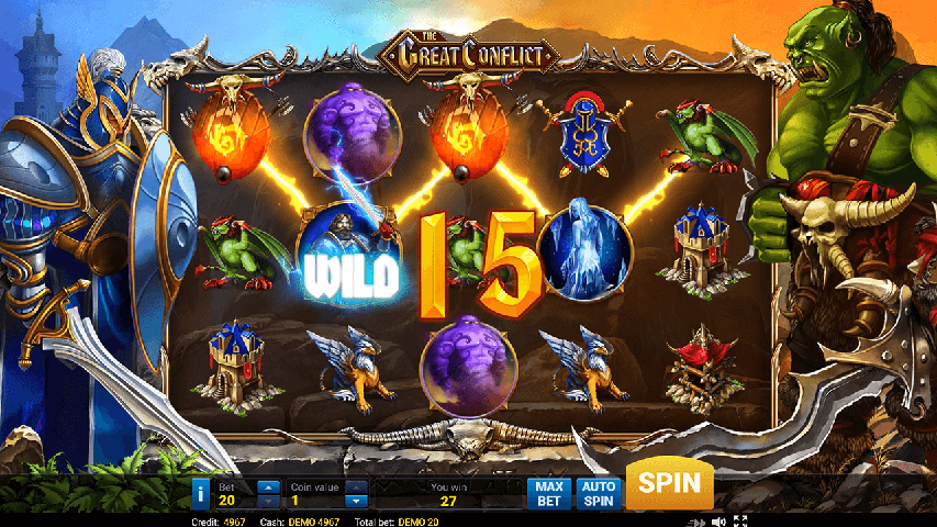 O grande conflito on -line online apresenta um campo de batalha. Você assume o papel dos humanos que combatem orcs até que não existam mais. A atividade de fiação está cheia de ação enquanto você executa os rolos em direção a várias recompensas. Não se esqueça do bônus enormes E grandes vitórias que tornam o jogo ainda mais infeccioso. O que mais você pode procurar em um jogo, além de bônus lucrativos e grande êxtase?