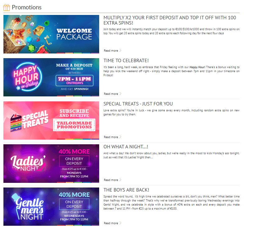- Todos os dias, entre as 11h e as 13h, todos os jogadores podem se beneficiar da oferta da hora do almoço apelidada de slunchtime. Quaisquer depósitos feitos durante esse período ganharão um jogador 20 rotações gratuitas para serem usadas em qualquer um dos slots do cassino. No entanto, os jogadores devem depositar no mínimo 20 libras para reivindicar esse bônus.
